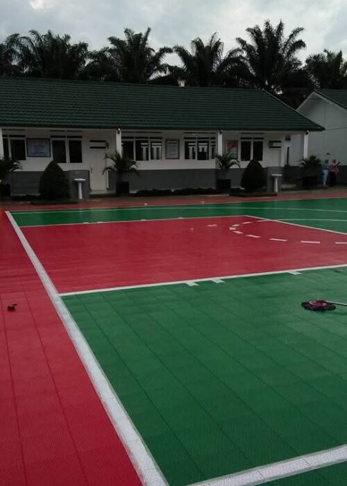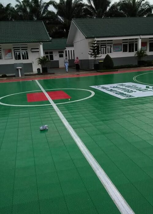 Lantai modular praktis dengan sistem bongkar pasang yang kuat dan fleksibel untuk lapangan futsal, basket, maupun badminton.